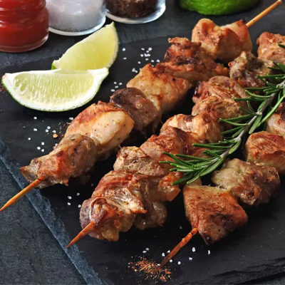 Ah, cara, tá ligado nesses espetinhos de carne? Tipo, são pedaços suculentos de carne espetados em palitos, prontos pra serem devorados com um sabor que vai explodir na sua boca, tipo "Wubba Lubba Dub Dub" de tão bom!