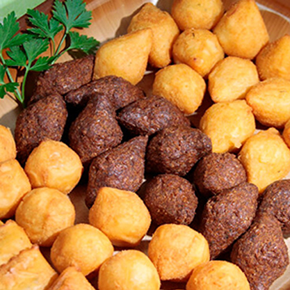 Porção 50 unidades (coxinha, quibe, enroladinho de salsicha, bolinh...